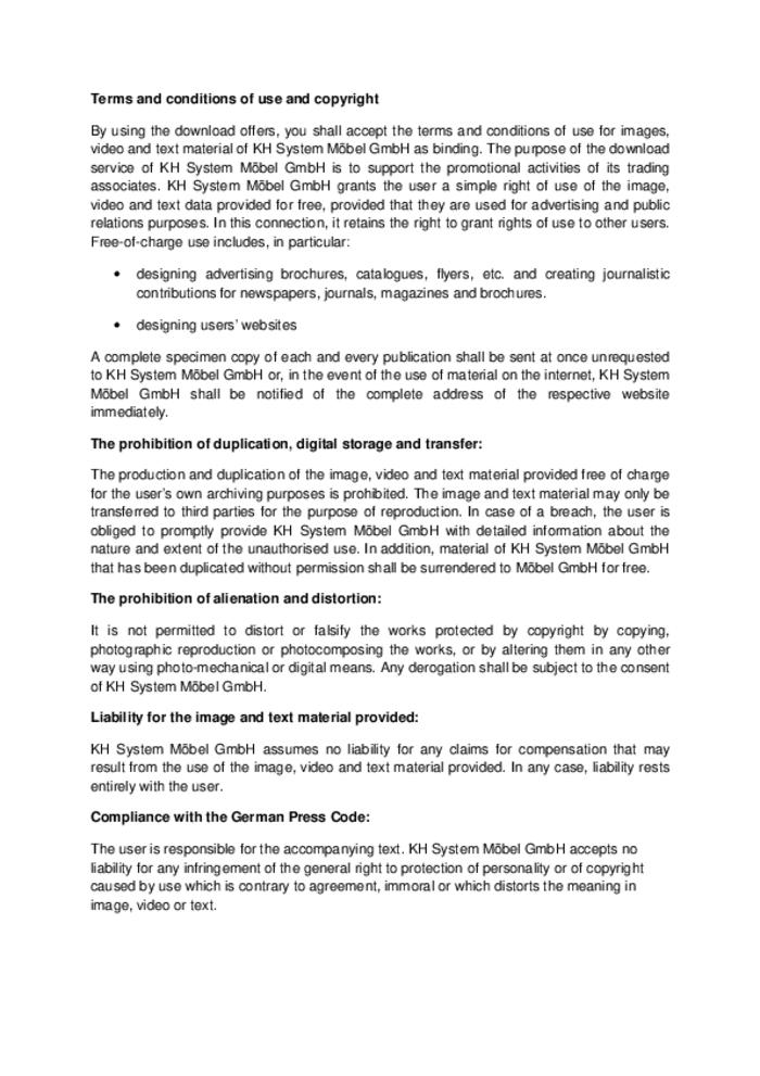 Terms and conditions of use and copyright